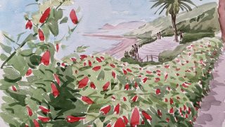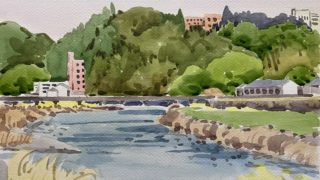 透明水彩画 神園正美の透明水彩画(247)描かれた場所を探して|検証:宮崎編|清武川付近