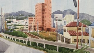 透明水彩画 神園正美の透明水彩画(80)色づき始めの山々