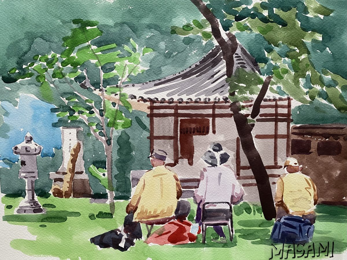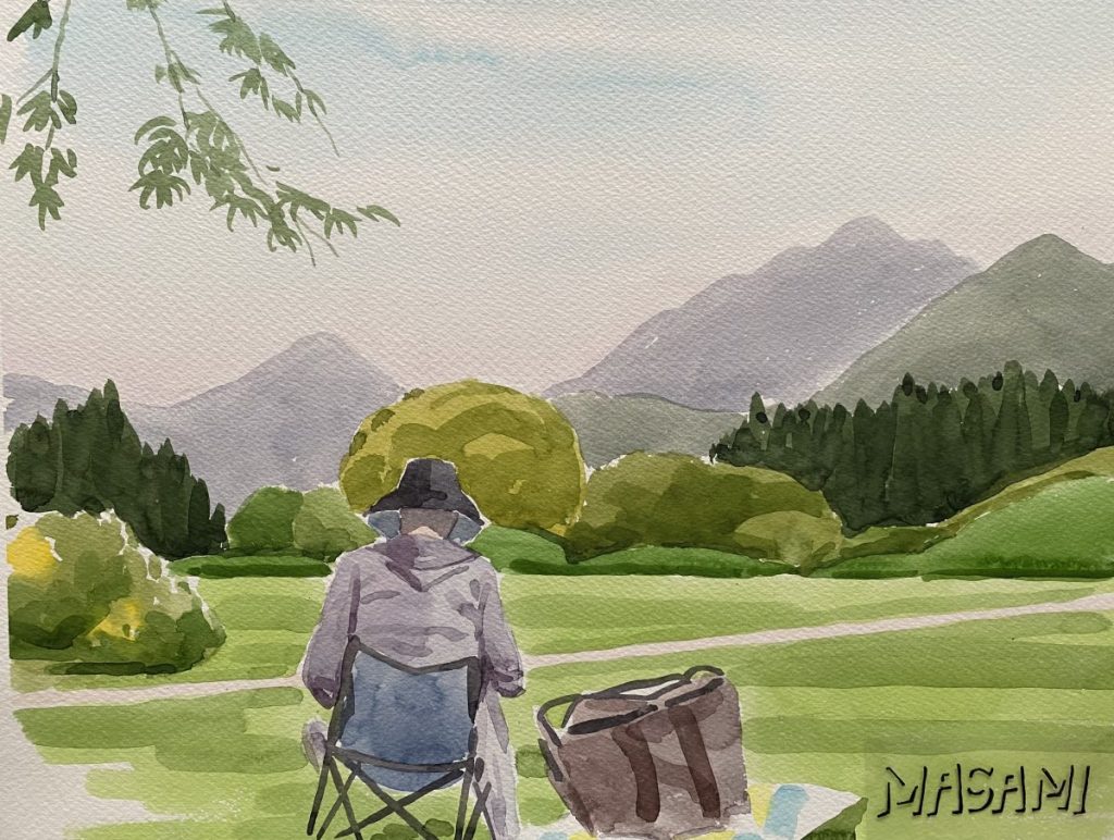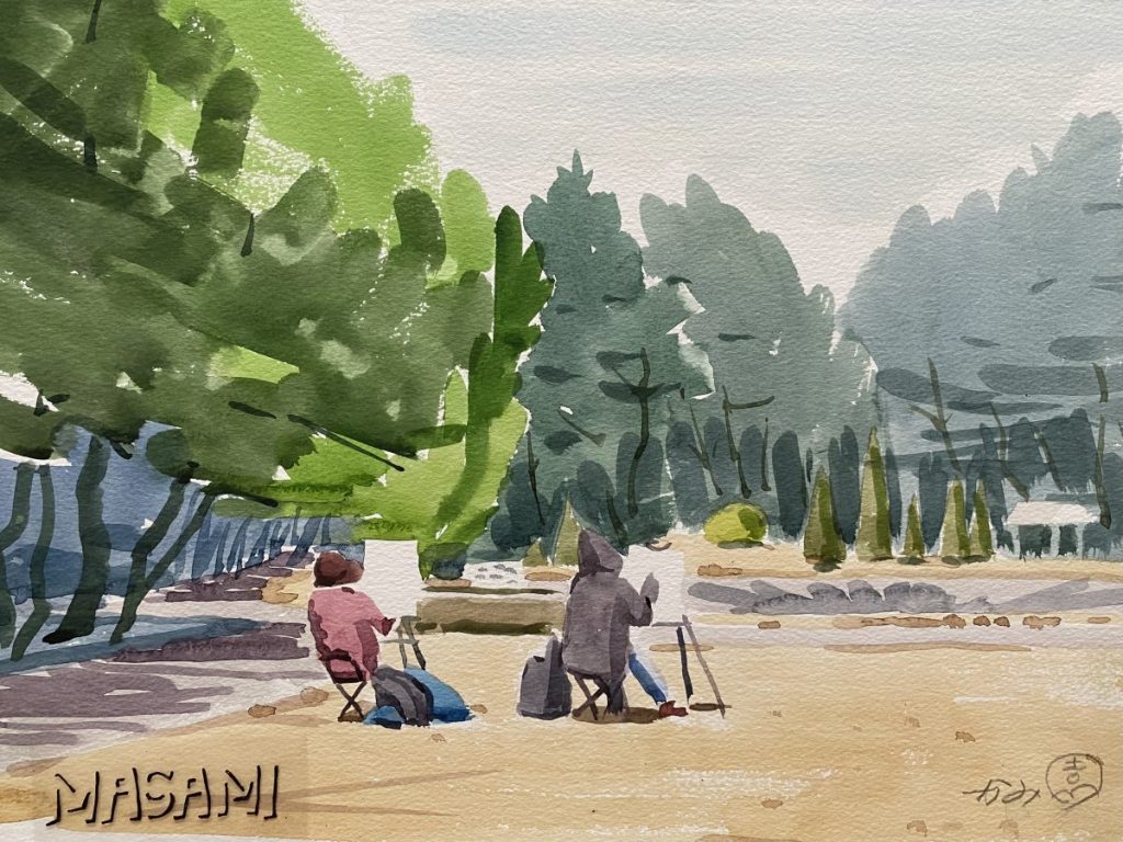今回は父の絵画教室で、スケッチに出かけた時の様子を描いた絵をご紹介します。
