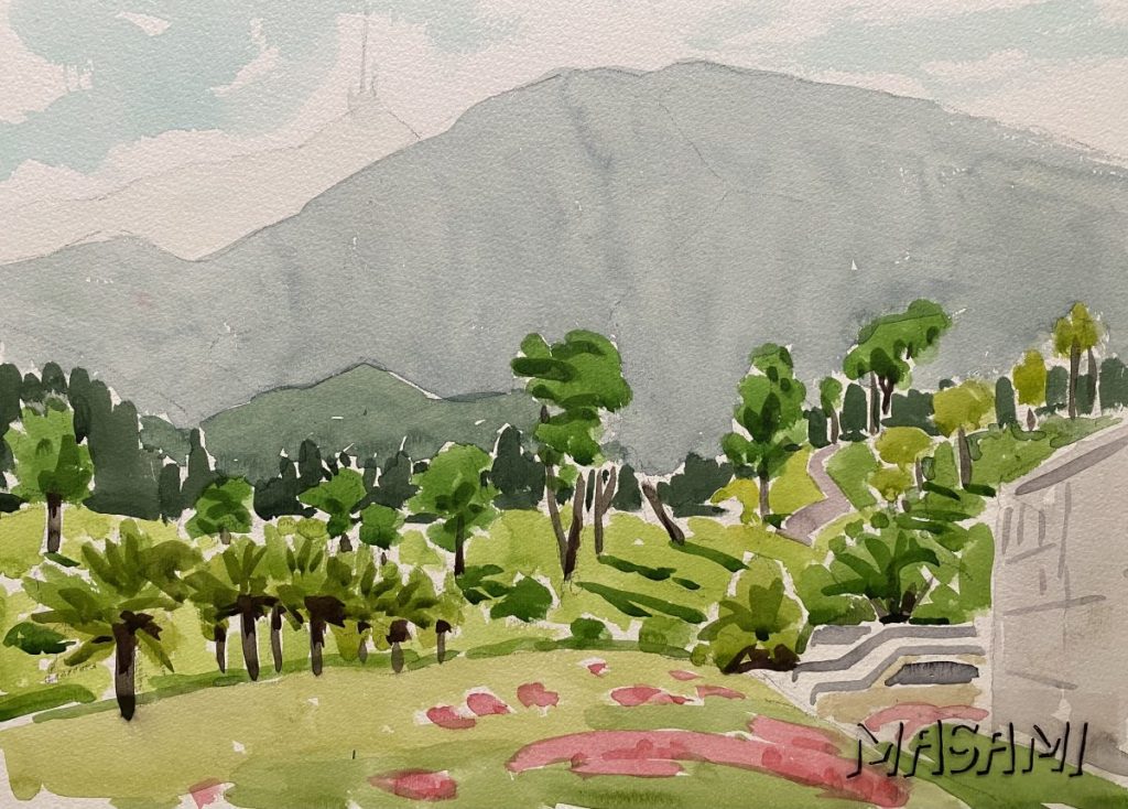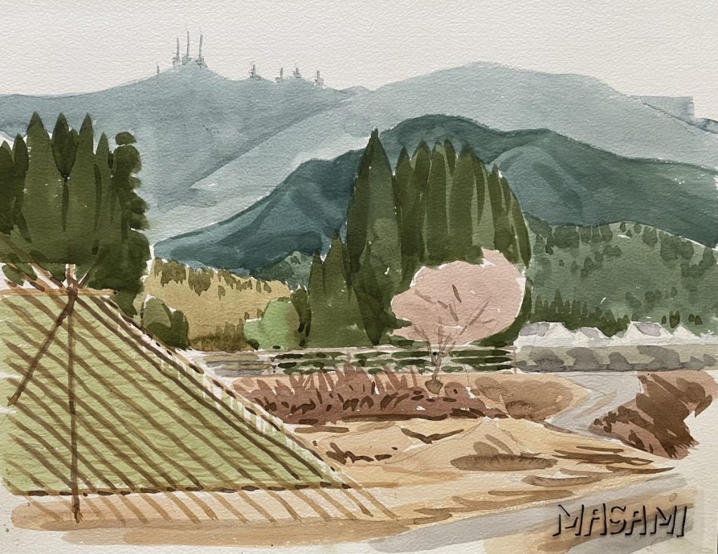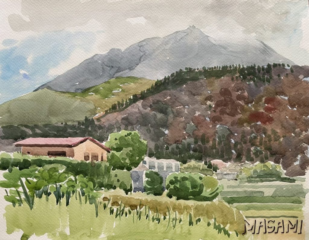神園正美の透明水彩画(78)鰐塚山を眺めて