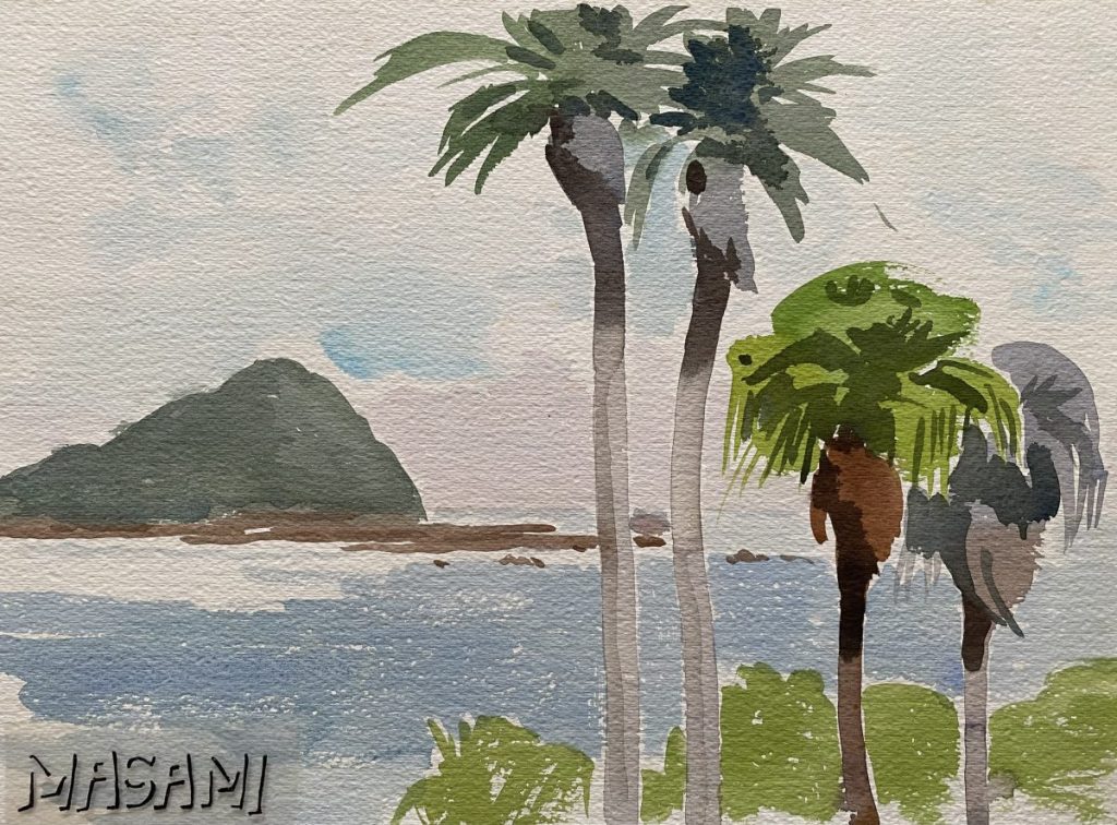 絵を整理していると日南海岸をやわらかなタッチで描いたものがみつかりました。