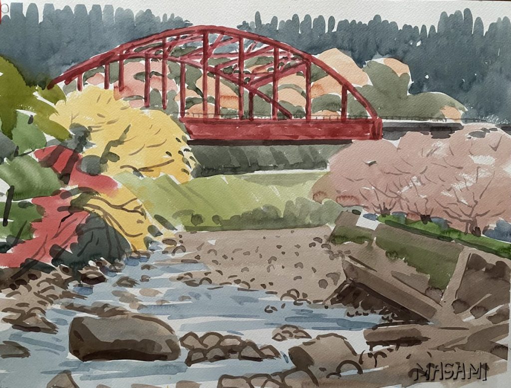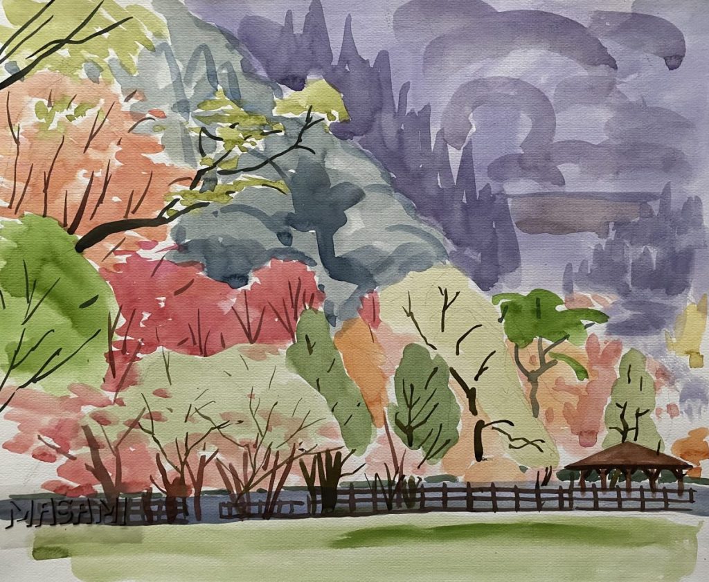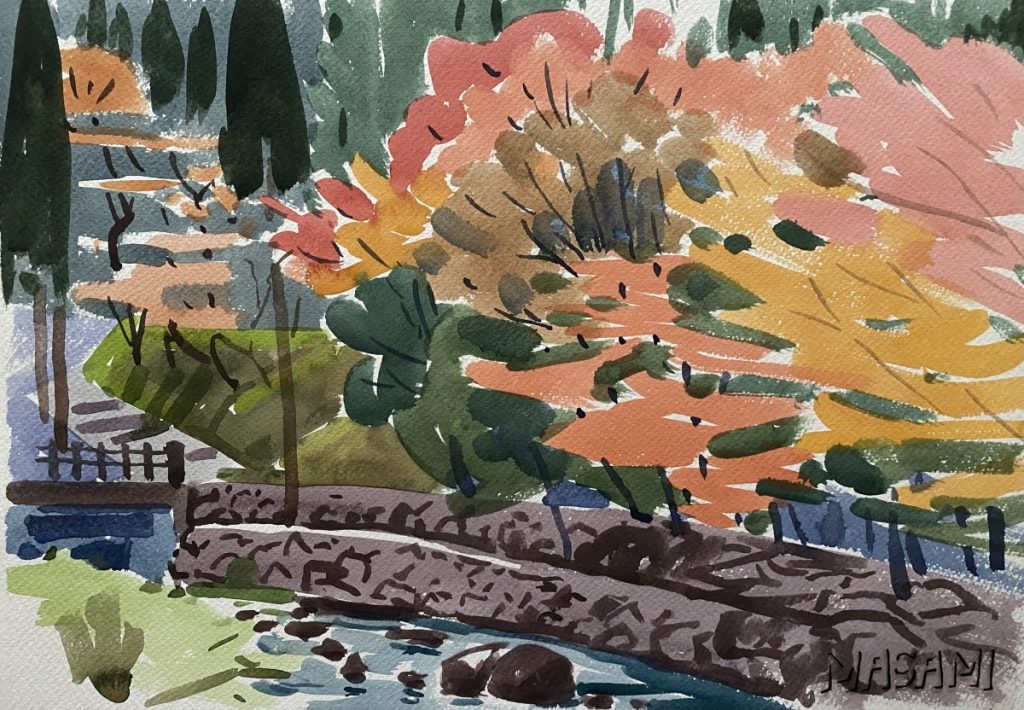 紅葉を描いても、葉っぱを一枚一枚丁寧に描くようなタッチではありませんが、父の目に飛び込んできた色彩がそのまま伝わって来るような気がします。
