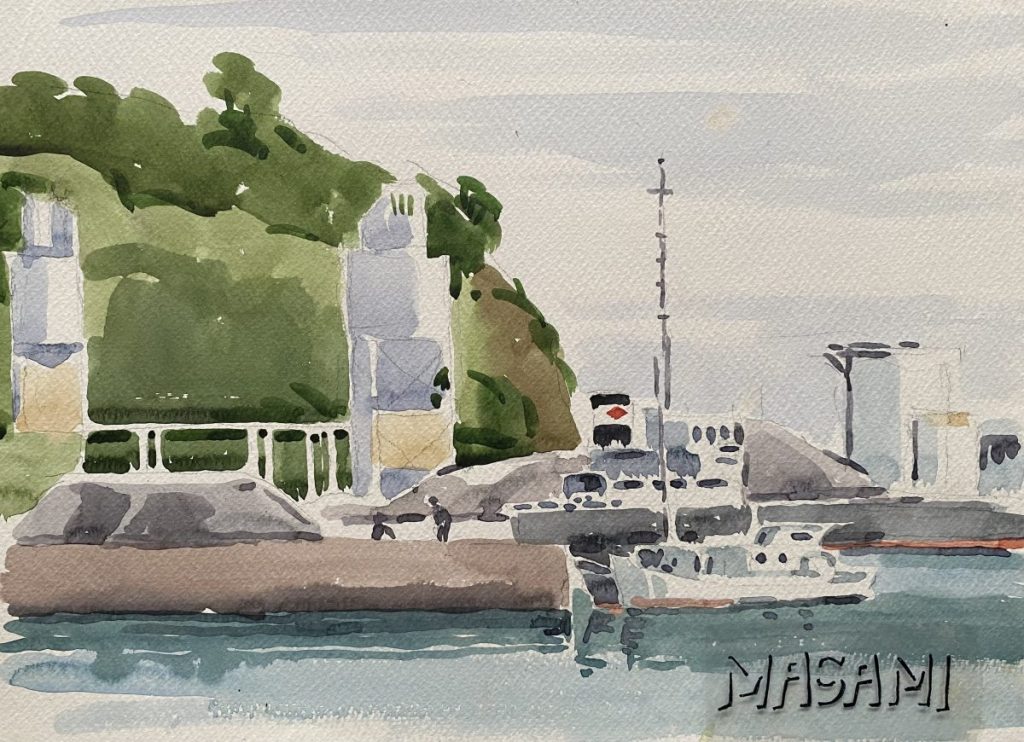 船や漁港を描いた絵は、これまでに何度もご紹介しておりますが、まだまだ残されていますので、ご覧いただけますと幸いです。
