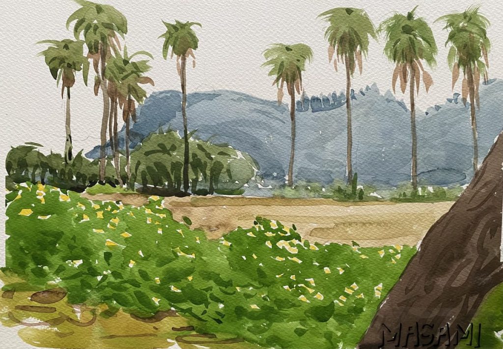 今回は、父の描いたワシントニアパームを含む風景画をご紹介します。