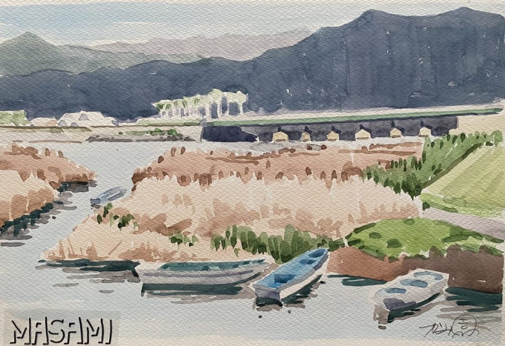 父は海や川、漁港、河口、湖、池とさまざまな水辺の風景を描き残しています。