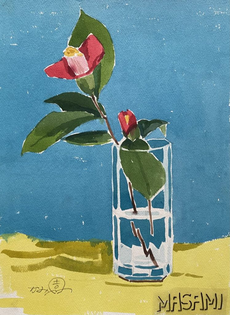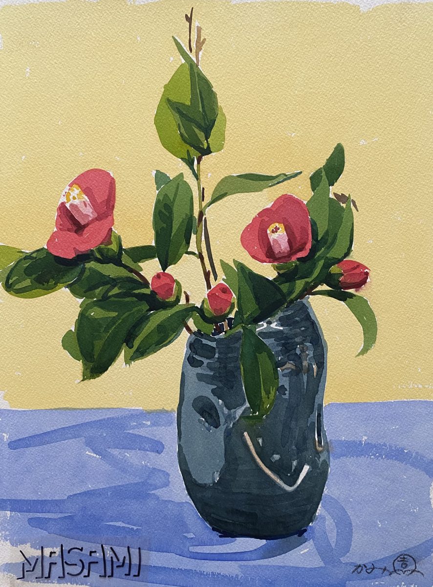 実物には及びませんが、絵の中の椿にも癒やされる思いです。