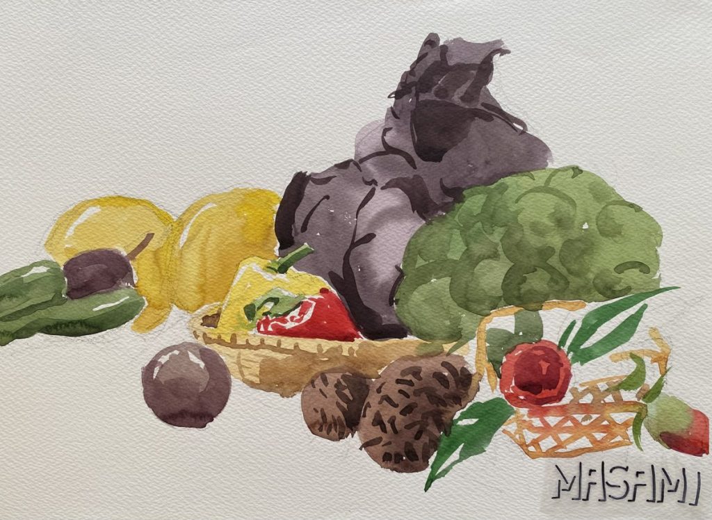 このびわの絵も、ご紹介には及ばないとお蔵入りしていたものでしたが、急に思い出し眺めてしまいました。
