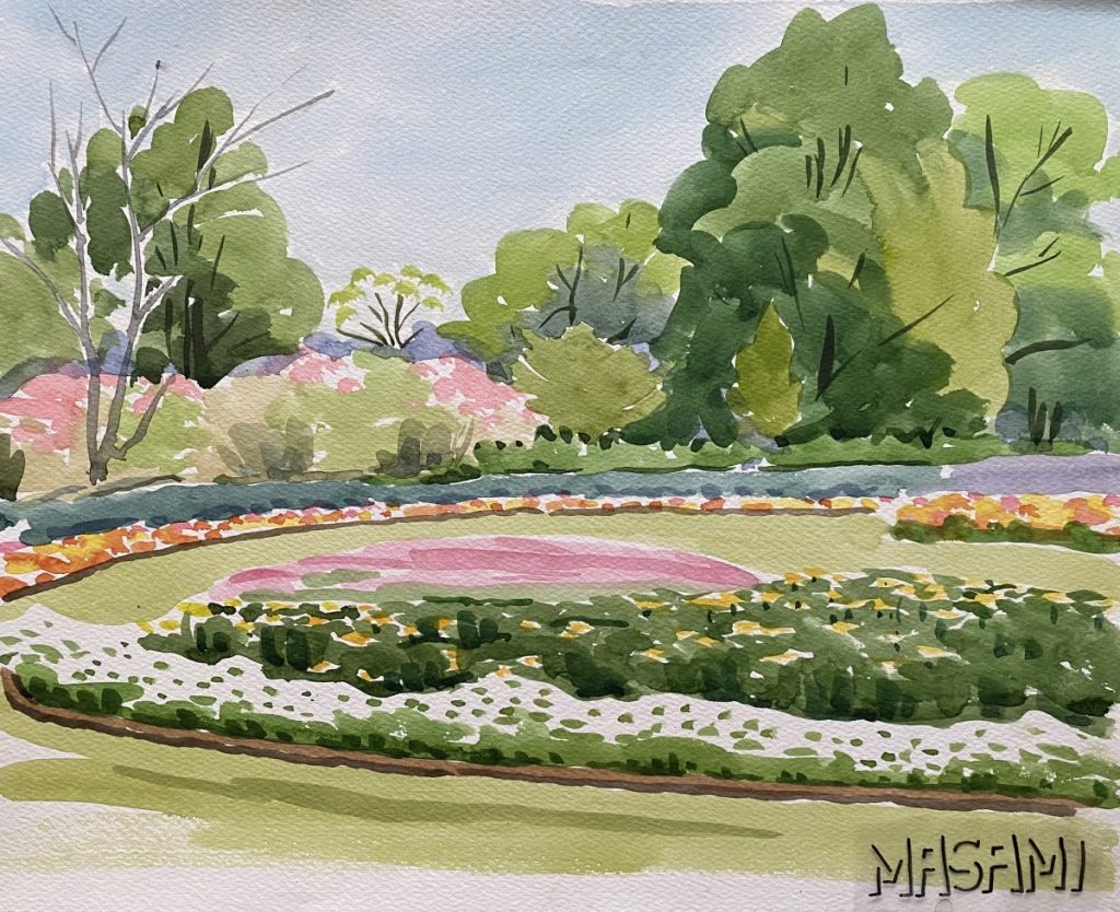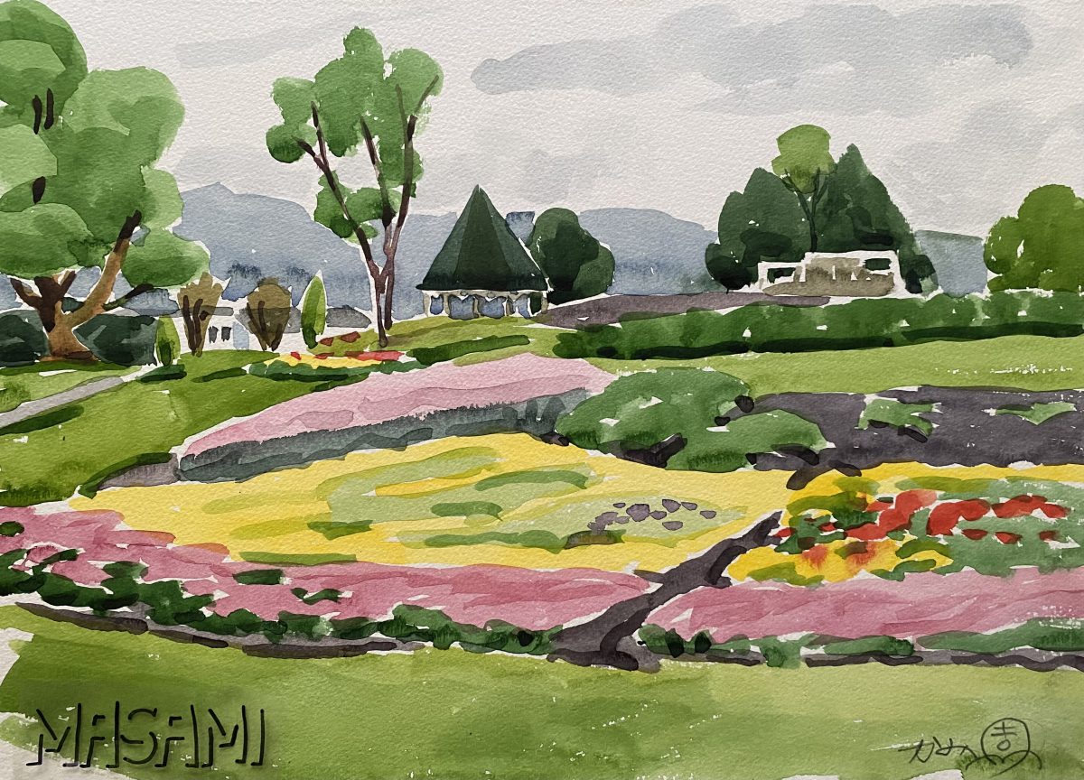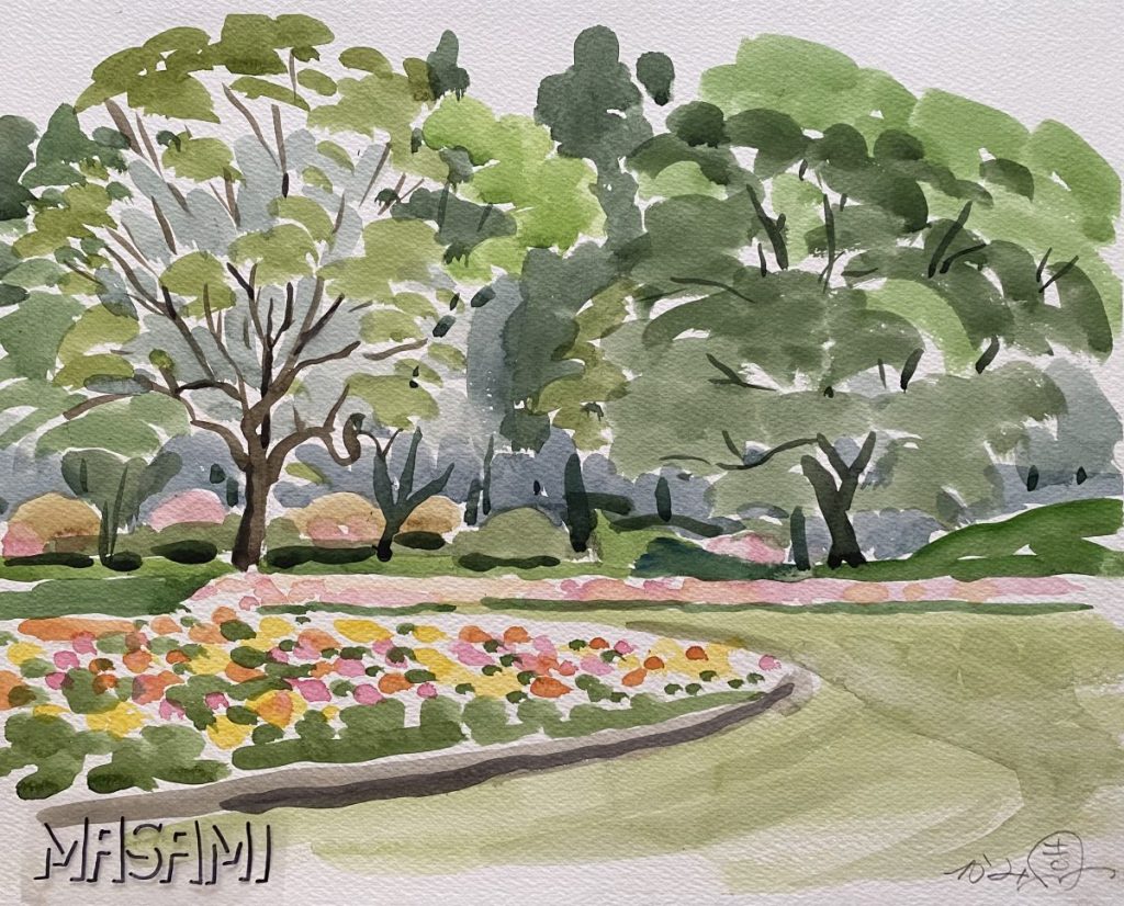 今回は、父の描いた公園の花壇の絵をいくつかご紹介します。
