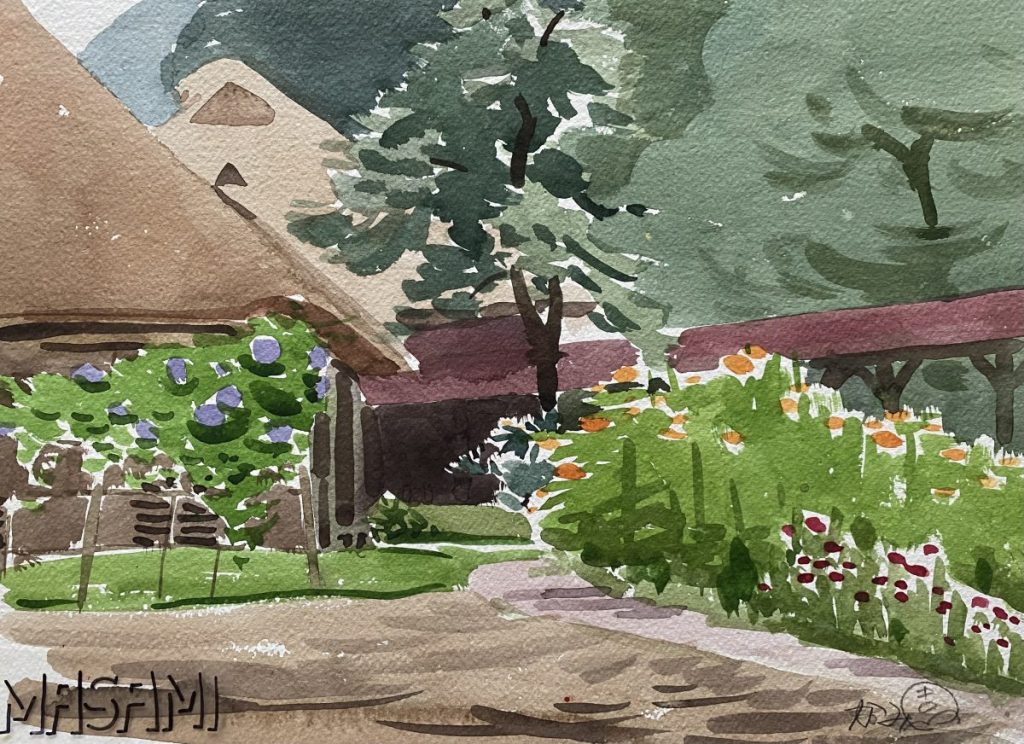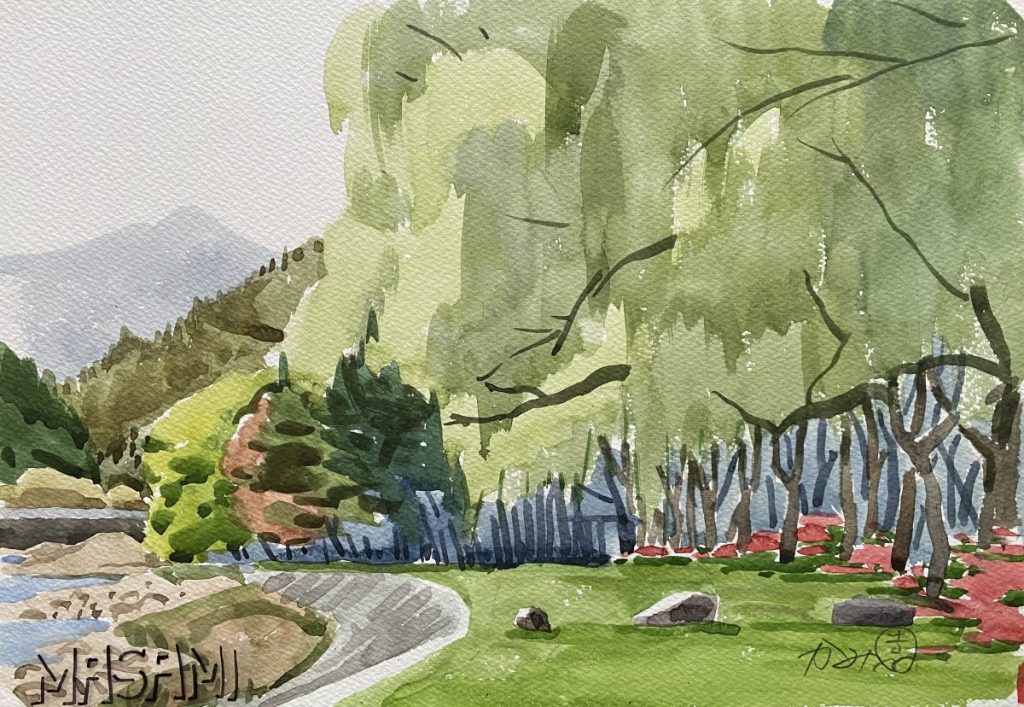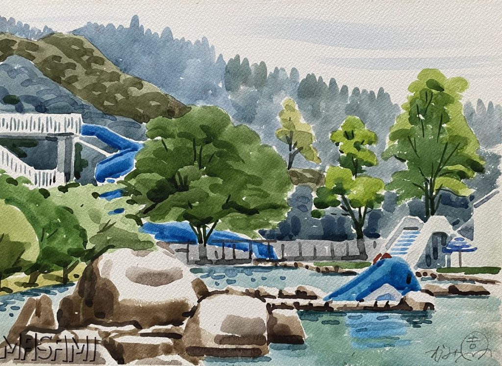 神園正美の透明水彩画(155)綾川荘付近を描く