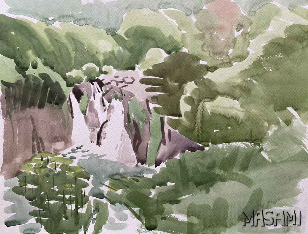 神園正美の透明水彩画(156)ままこ滝を描き続けて
