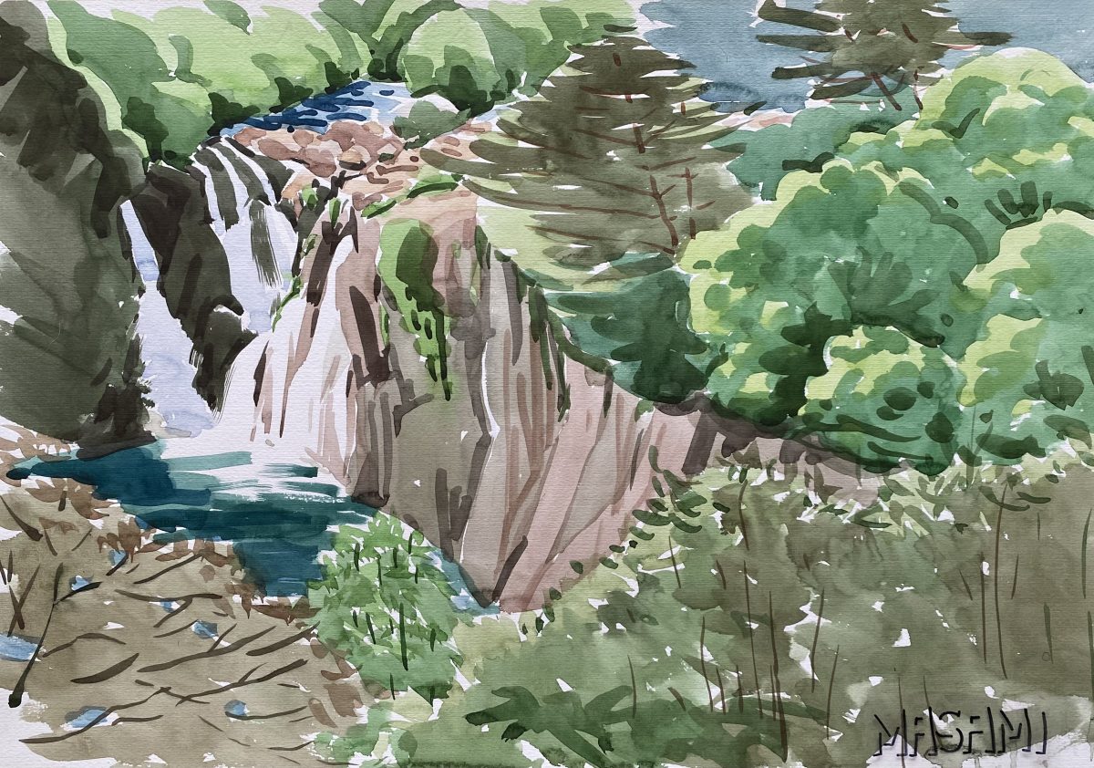 神園正美の透明水彩画(156)ままこ滝を描き続けて