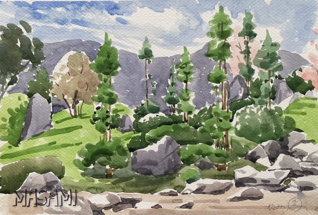 今回は、父の描いた法華嶽公園日本庭園の絵をいくつかご紹介します。