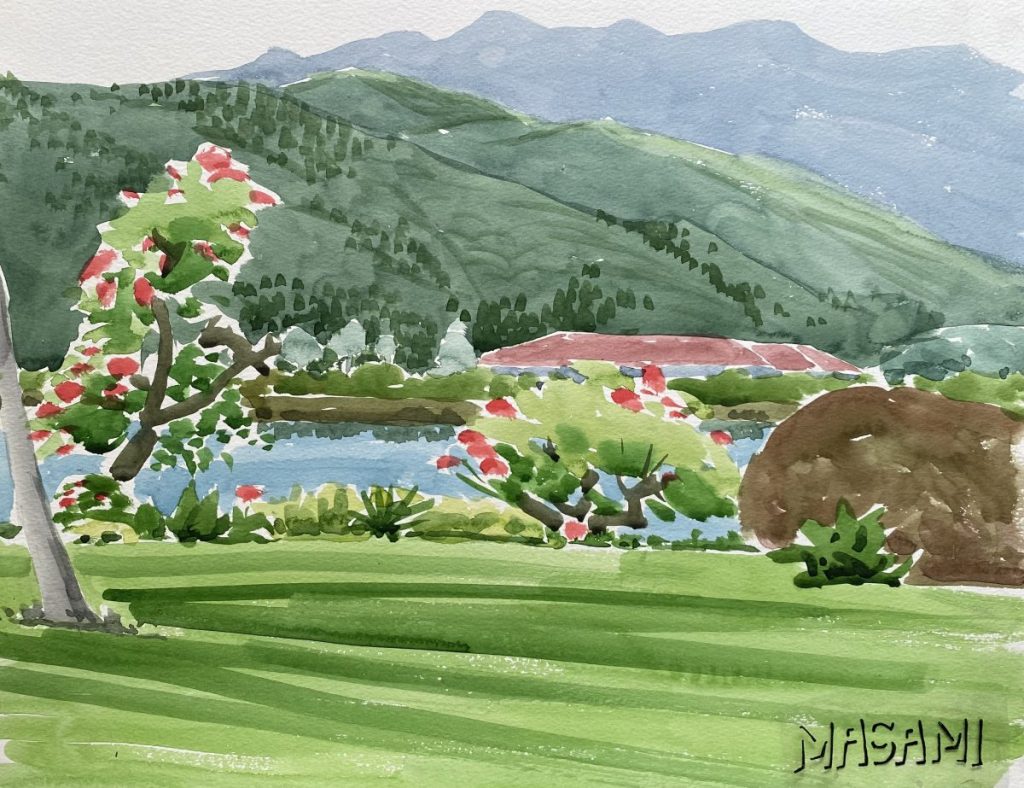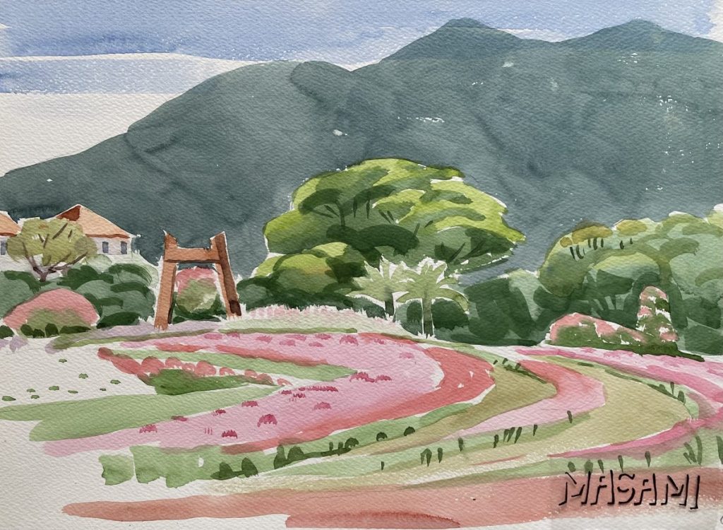 今回は、父の描いた宮崎市曽山寺や青島こどもの国付近から斟鉢山を眺めた絵をいくつかご紹介します。