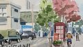 遠くに広がるたくさんの建物を描くのは、難しいことのように思えますが、それぞれの建物をデフォルメしながら、その特徴を捉え表現していました。