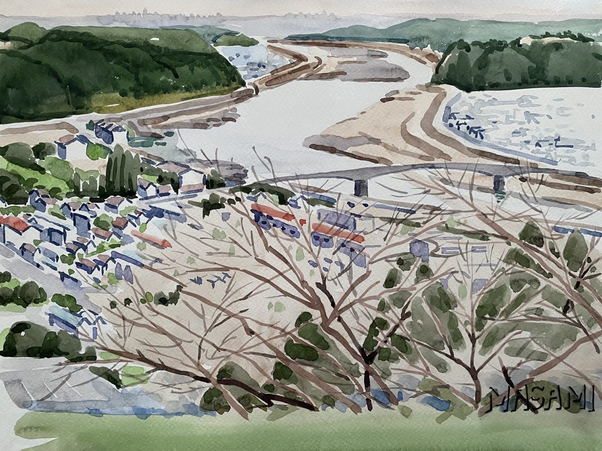 父の絵には様々な風景画があり、その中には高いところから街や景色を見渡した作品も数多くあります。