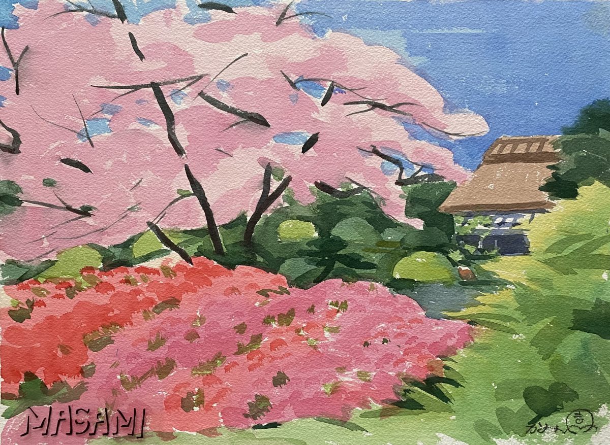 父の絵を整理している時に今回のタイトルに載せた絵を見つけ、桜とツツジが同時期に見れるのかな?と不思議に思いました。