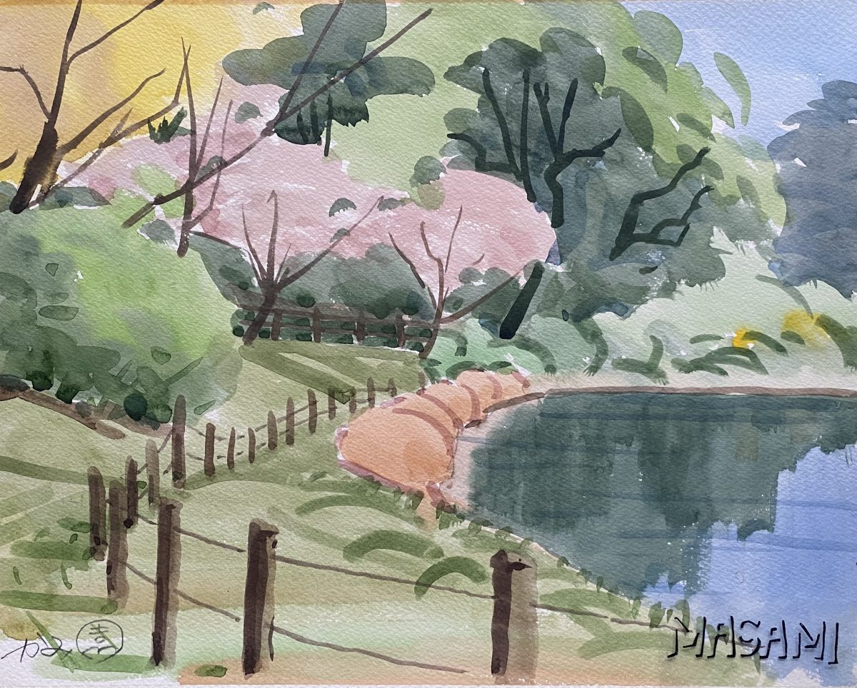 ※お目汚しになりますが、作品に孫の書いた影文字で「MASAMIスケール」(縦横2×8センチ)をのせています。作品の大きさの目安になれば幸いです。