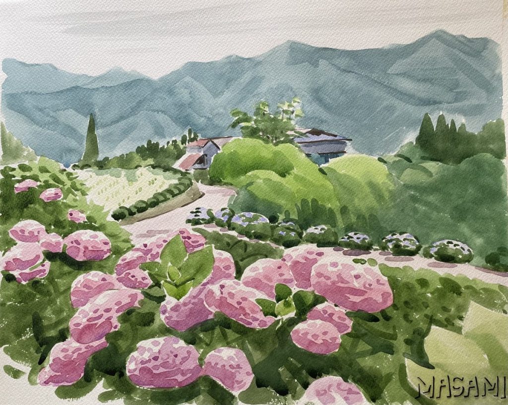神園正美の透明水彩画(203)紫陽花を描いて〜その3