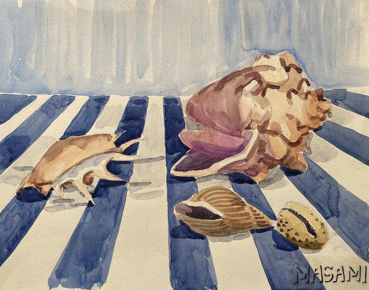 ※お目汚しになりますが、作品に孫の書いた影文字で「MASAMIスケール」(縦横2×8センチ)をのせています。作品の大きさの目安になれば幸いです。
