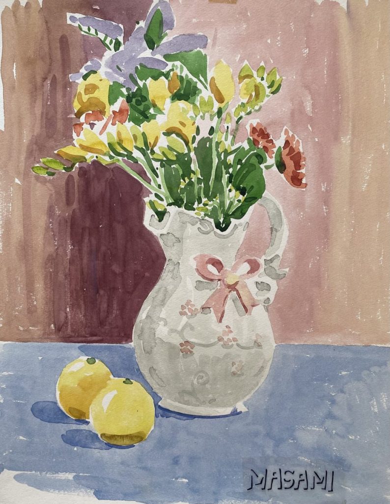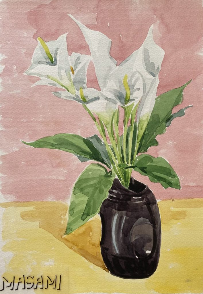 小さいカラーもよく描いていますが、こちらはご近所の庭先に植えていらっしゃる方がいたので頂戴する機会が多かったのだと思います。
