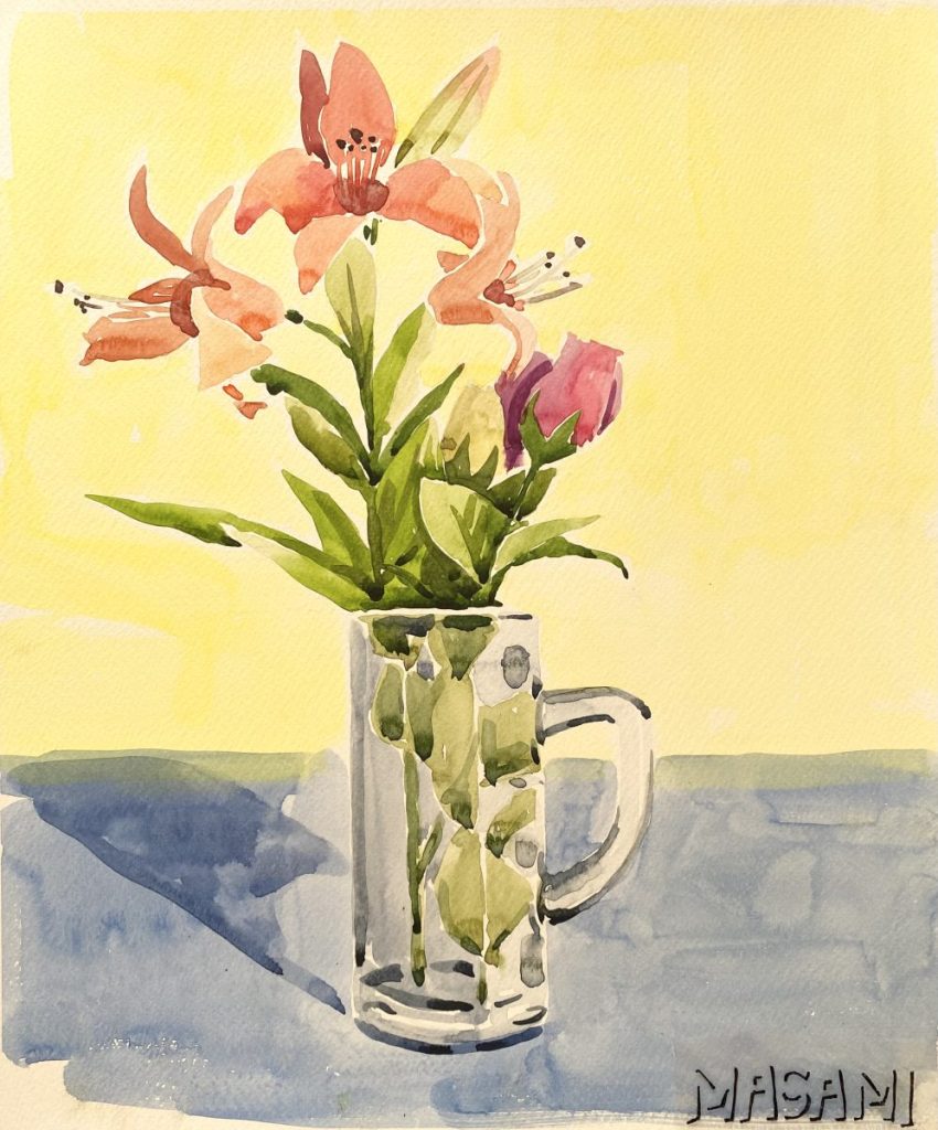 ゆりの花はモチーフのあとはお仏壇に供えることができるので、よく買っては描いていた気がします。