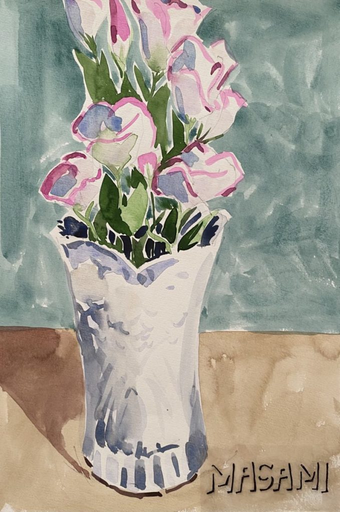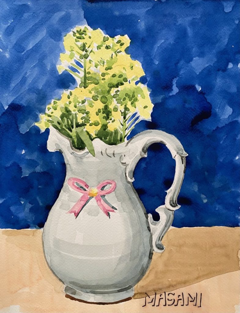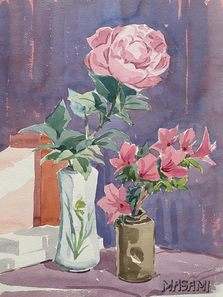 お天気の良い日でも、いただいたお花があったり、気に入ったお花を購入できたりすると家の中に籠もって絵を描いていた父でした。