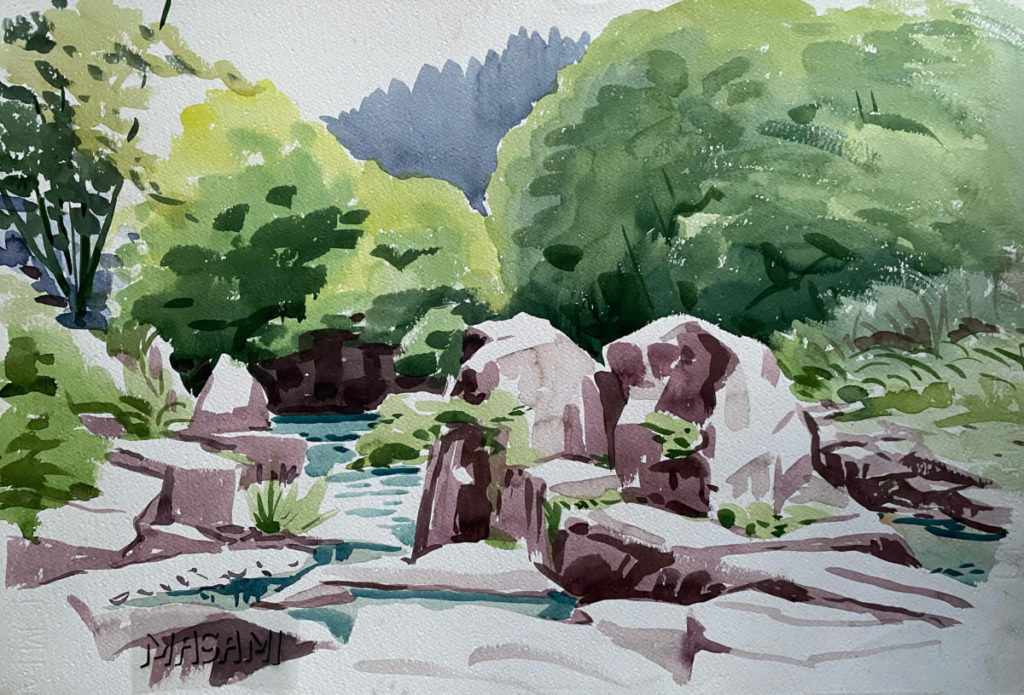 絵画教室でデモンストレーションが終わると、父は皆さんが描いていらっしゃるところに行ってアドバイスをしたり、時には自分も腰を据えて描いたりもしていました。