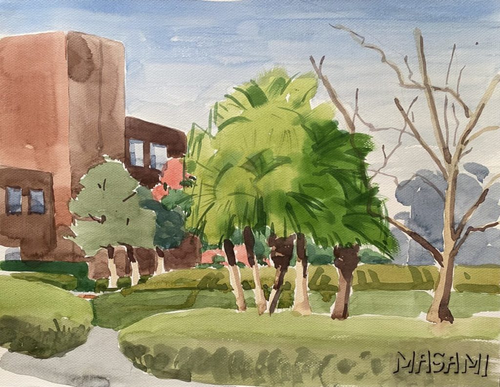 神園正美の透明水彩画(232)宮崎大学構内にて