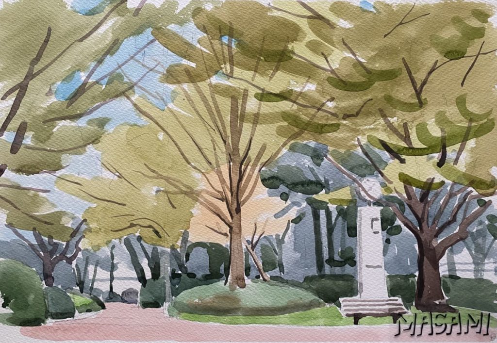 今回検証してみようと思った絵は、以前(90)美しい公園の記事の中でご紹介した「宮崎中央公園(文化の森)」の絵です。