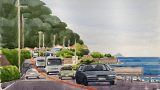 今回検証してみようと思った絵は、(3)宮崎の美しい風景〜父の絵画に込められた郷土愛の記事の中でご紹介した、「堀切峠」の絵です。※正確には道の駅フェニックス付近の絵です。