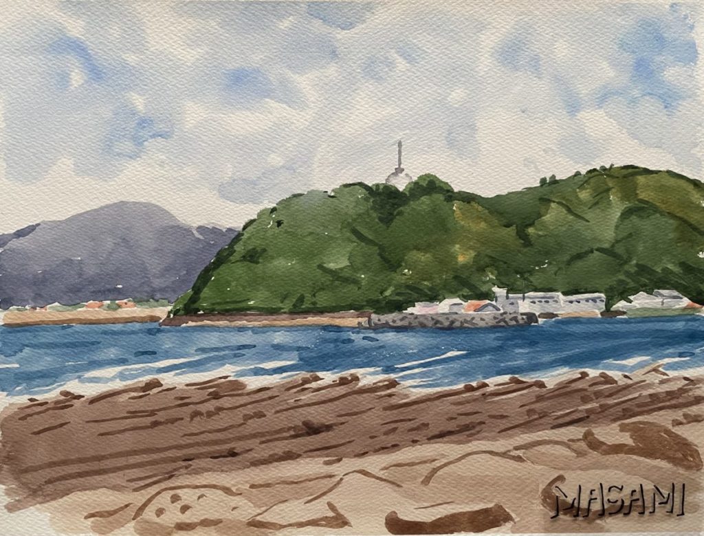 今回検証してみようと思った絵は、(134)岩場を描くの記事の中でご紹介した、「白浜海水浴場付近」の絵です。