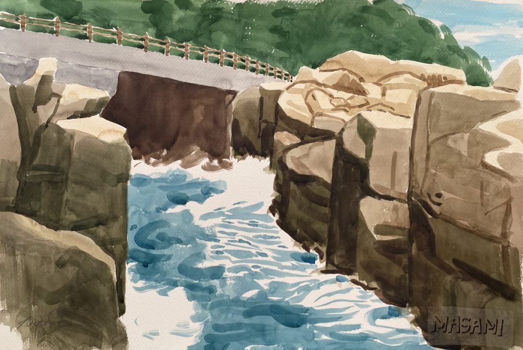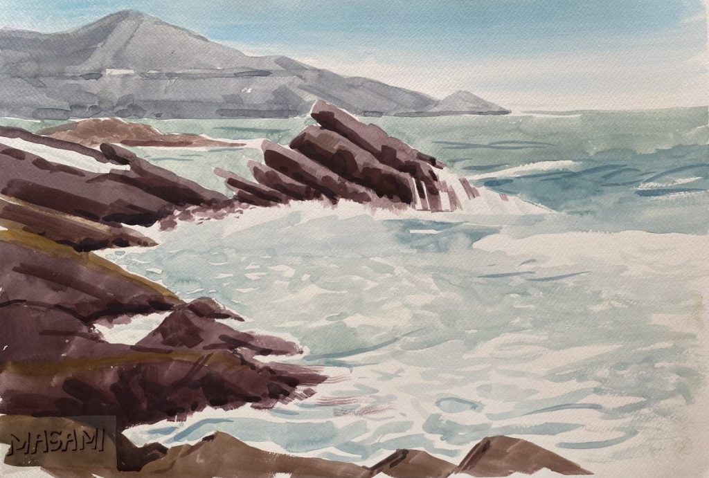 今回は、父が描いた荒々しい岩場と、その周辺の水辺の風景をいくつかご紹介します。
