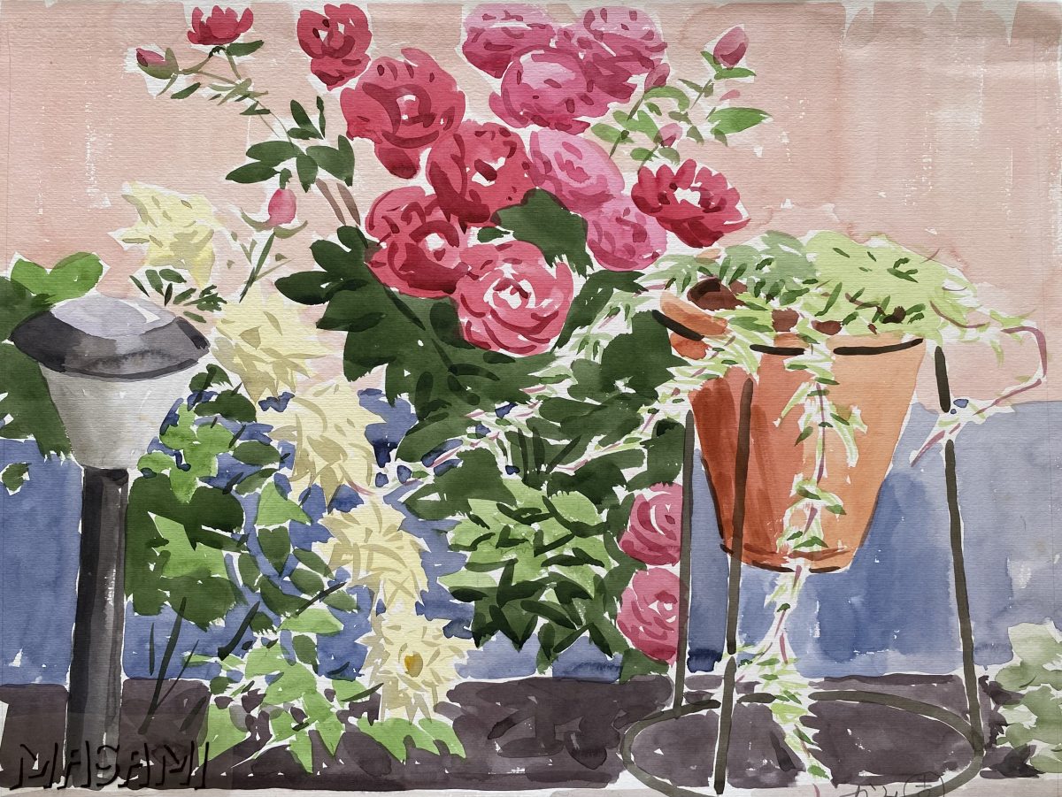 今回は父が唯一、我が家(娘宅)の庭先を描いた絵をご紹介します。