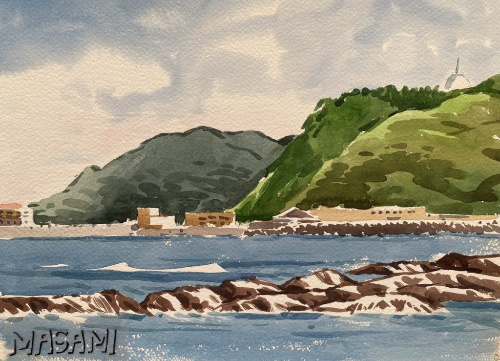 釣りも趣味だった父は、なじみのある海辺からも風景を描いていました。