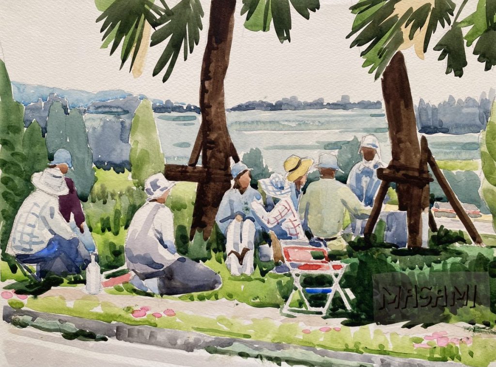 風景画を描くことが主な目的でしたが、それ以上に、参加者全員でハイキングのような雰囲気を楽しむことも教室の醍醐味だったように感じています。