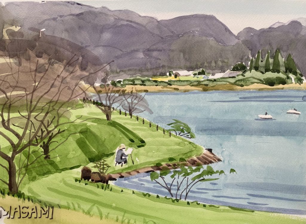 湖畔でのスケッチ