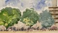 風景画を描く時には、薄っすらと鉛筆で輪郭をなぞったあと、いきなり絵筆で色をつけ始め、短時間で仕上げていた印象でした。