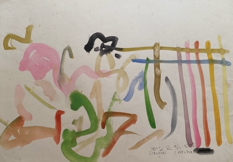 作品と言えるものではありませんが、一緒に絵筆を握って描いた記念すべき一枚となりました。