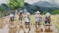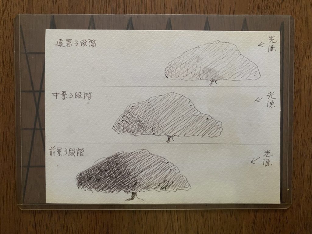 絵画教室で野外スケッチに出かける時には、この絵のように簡単にデモンストレーションもしていました。