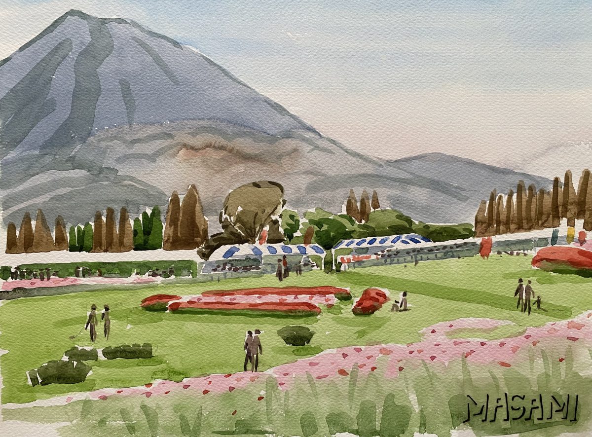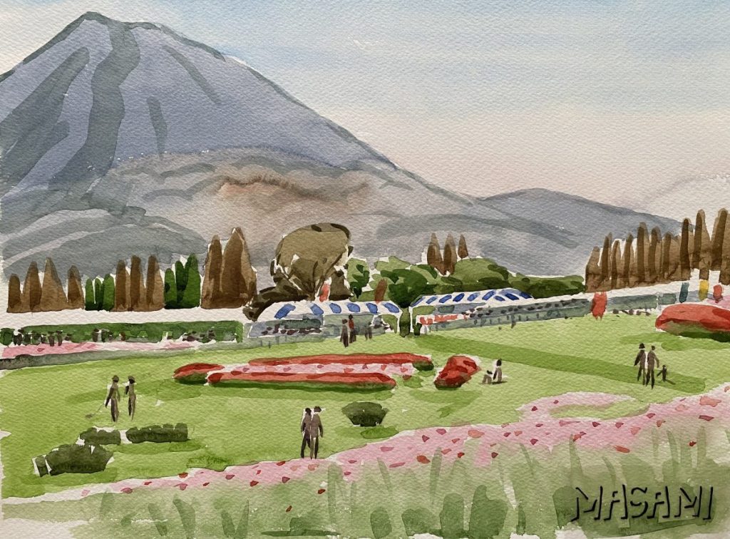 秋の澄んだ空気、花々の美しさ、大好きな山を眺めて、最高に幸せな気持ちに包まれながら描いていたのではないでしょうか。