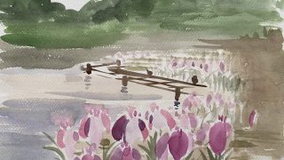 透明水彩画 神園正美の透明水彩画(60)宮崎県日南市の風景