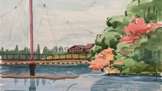 透明水彩画 神園正美の透明水彩画(110)風景の中に〜建物を描く