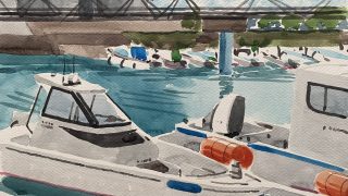 透明水彩画 神園正美の透明水彩画(100)漁船を描く