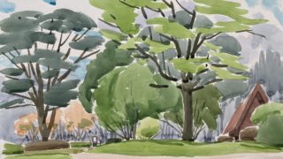 透明水彩画 神園正美の透明水彩画(220)植栽を描き続けて