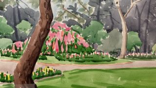 透明水彩画 神園正美の透明水彩画(227)公園散策②