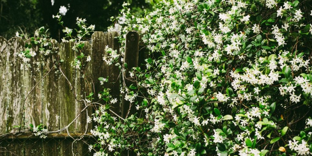 ジャスミンは、モクセイ科のつる性植物で、純白の可憐な花を咲かせます。