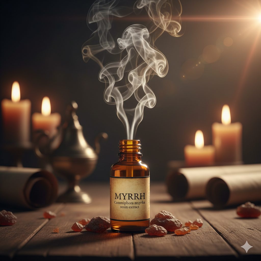 ミルラ精油は、私たちに深い精神的な落ち着きと、古からの知恵をもたらしてくれる、まるで聖なる存在のようです。